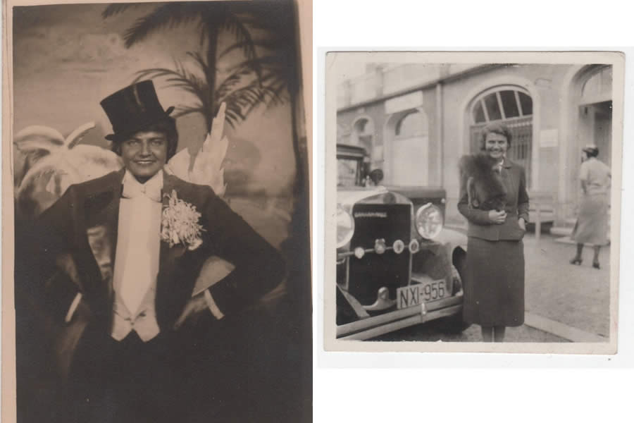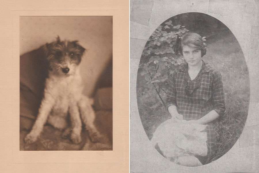 Dolly, Erna’s dog (left) and Erna sewing (right).