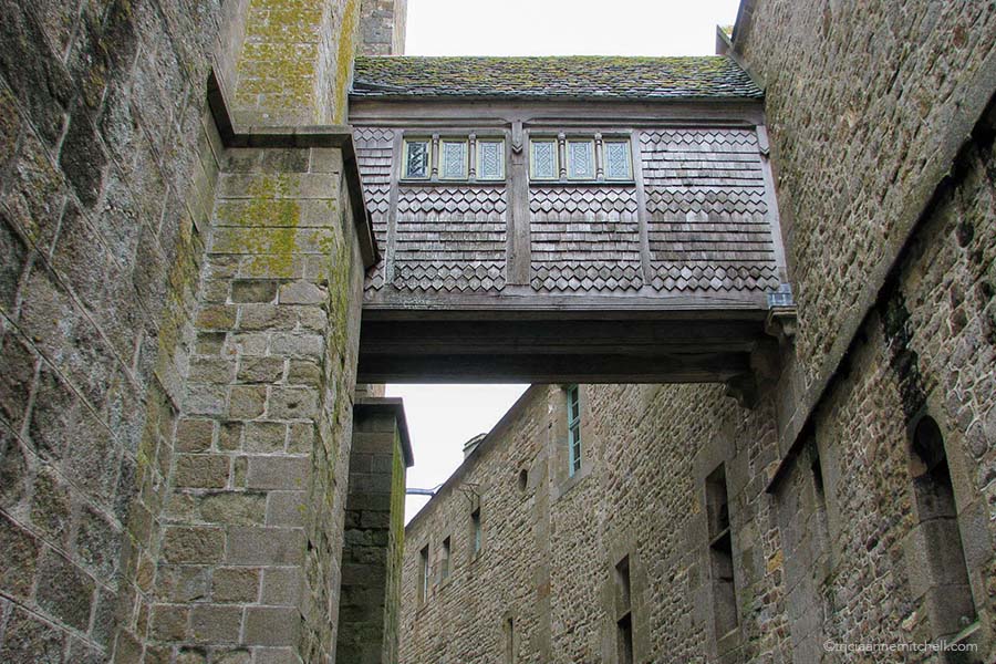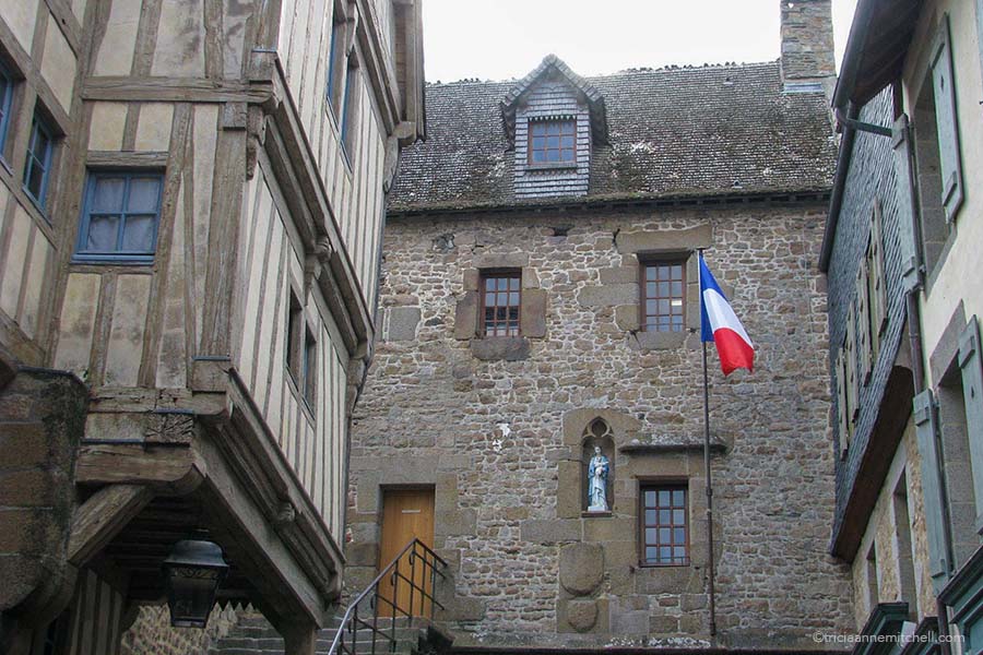 Over the centuries, a self-sufficient village, now plentiful with restaurants, souvenir shops, hotels and a post office, sprung up in the prime real estate just below the abbey.  Today, the village’s sole cobbled street, which bustles with shopkeepers selling crêpes, Breton cookies and souvenirs, offers a footpath leading up to the abbey. In past centuries, merchants peddled candles and medallions for pilgrims there. Today, only thirty people inhabit the village.