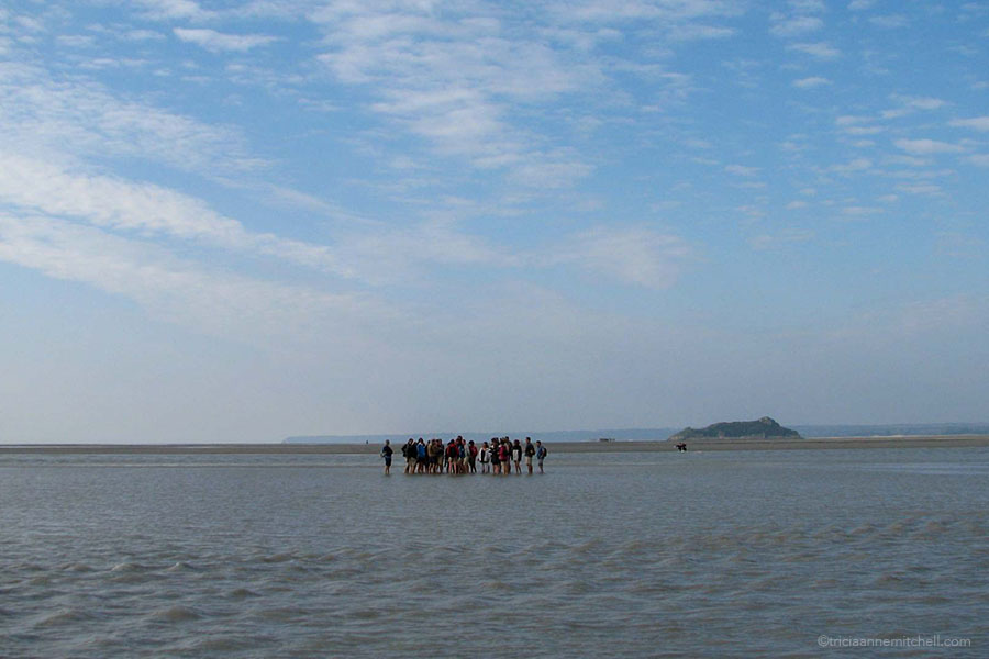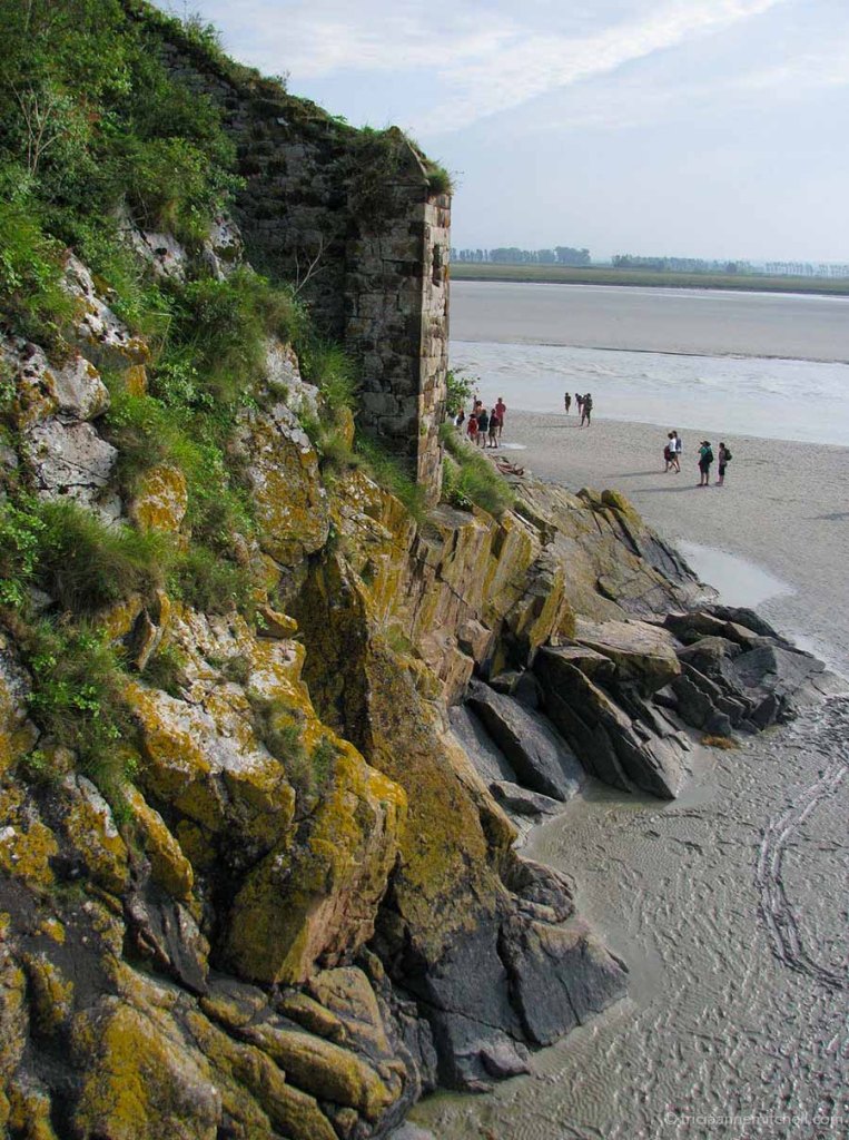 The highlight of our visits, by far, was walking out on the rocks and low tide mudflat just below the structure. When we ascended to the abbey the first day, we were intrigued by the vista featuring large groups of visitors being led out into the vast sandbar areas.