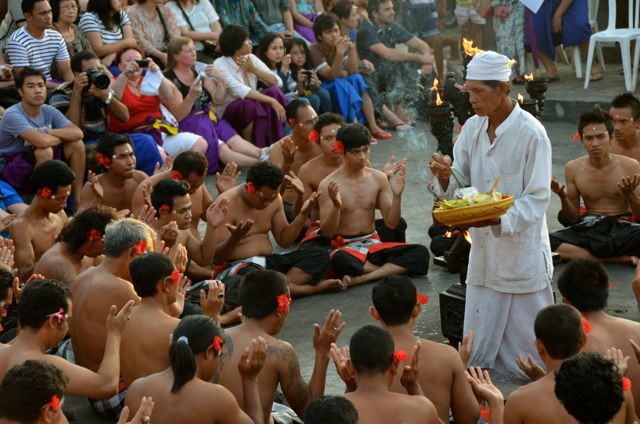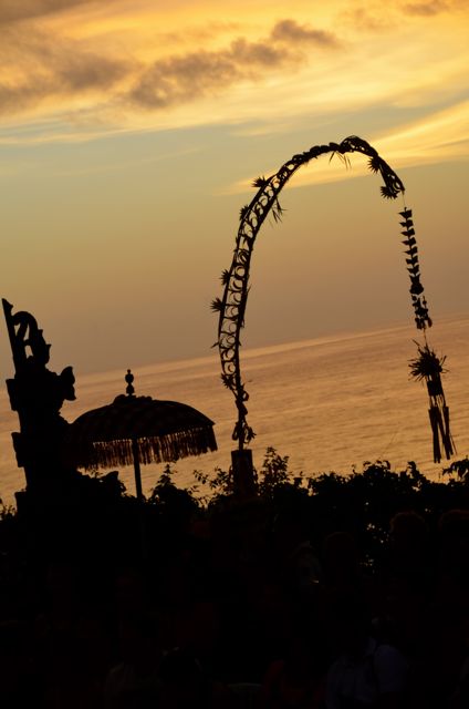 The seats and stage were perched at the end of a cliff, nearly 200 feet above the Indian Ocean. The water shimmered dramatically as the sun’s slumber approached. Overlooking the performance area was one of Bali’s most sacred temples, the Pura Luhur Uluwatu. Situated on Bali’s southwest tip, the temple is said to protect the island from evil spirits.