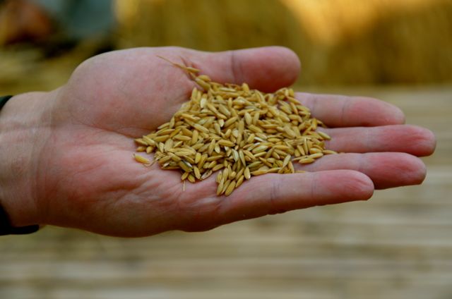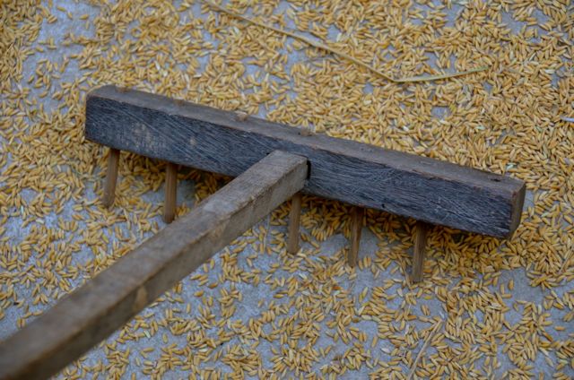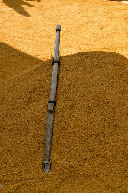 Golden grains flew through the air; most landed onto the ever-growing rice mountain underneath the table, whereas a few outliers found their way into our hair and clothes.