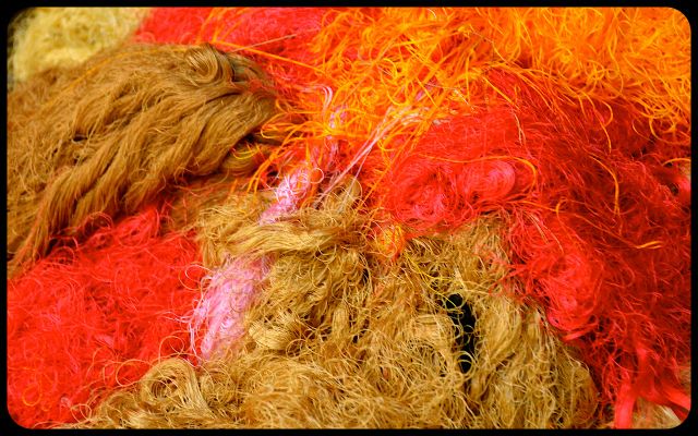 Once the silk has been carefully extracted from the silk worm’s cocoon, it is washed, twirled on to bobbins, and boil-dyed either via a natural or artificial coloring technique.