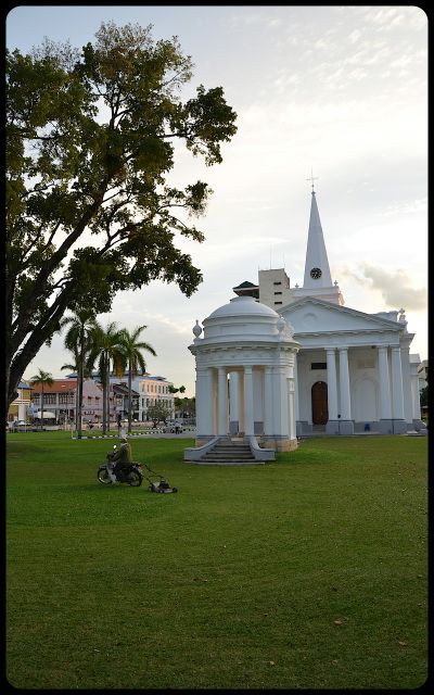 A motorcyclist cuts grass on the island of Penang, in Malaysia.