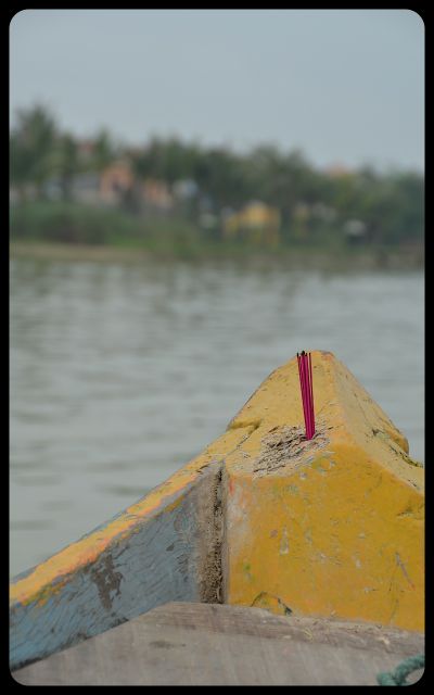With a rate negotiated, we hopped onto the watercraft. The last morsels of a bundle of incense sticks burned at the helm, honoring the spirits and expressing the driver’s and passengers’ wishes for a safe voyage. Like most boats in the region, a primitive eye was painted on the bow — designed to ward off evil spirits and to find the way.