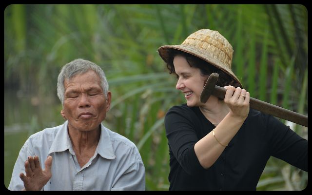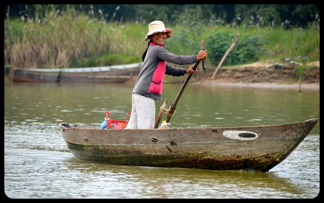 The driver continued to madly applaud, as if I had just finished a grand operatic performance. In Vietnamese, he prodded me to modify my rowing technique. When he rowed, the boat inched forward. When I was at the helm, it spun around in choppy circles.