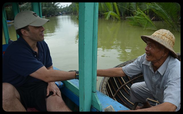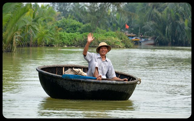 After fifteen minutes of childlike fun, I decided it was time to return to Shawn, our driver and the conventional wooden boat. Shawn gave some dong to the frolicsome basket boat man, in exchange for his maritime hospitality. We could feel his playful energy all the way back to Hoi An…
