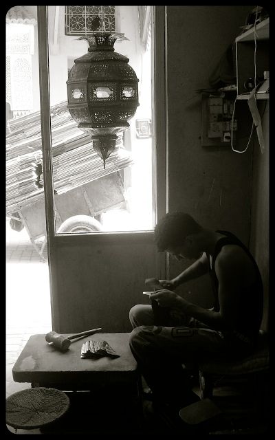 A young man in Marrakech shapes metal strips that will later be used to form the skeleton of a jewel-toned Moroccan lantern. In the town’s souk (bazaar), a colorful array of these finished lanterns adorns stalls, making for a picturesque stroll by night when blocks are all aglow. Palaces and riads (traditional Moroccan townhouses) glimmer with windows fitted with this vibrant glass, too.