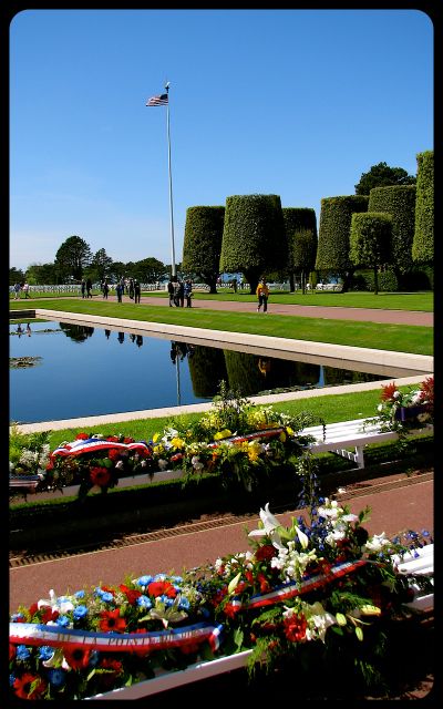 It was a fitting day to pay our respects at the American Military Cemetery in Normandy, France. Red, white and blue American and French flags adorned every snow-white marker in the cemetery. Clouds made scarce appearances in the sky. Mother Nature had rolled out her best weather. It was Memorial Day 2010.