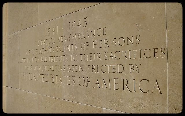“1941-1945: In proud remembrance of the achievements of her sons and in humble tribute to their sacrifice this memorial has been erected by the United States of America.”