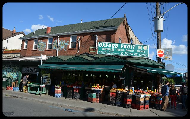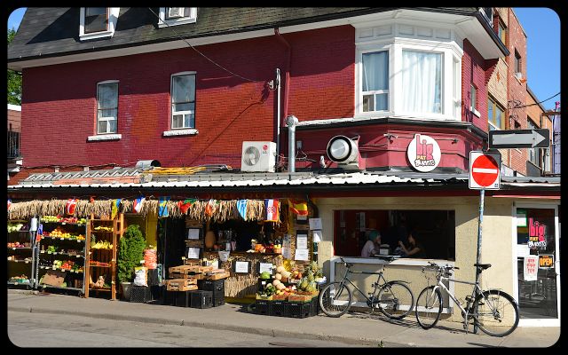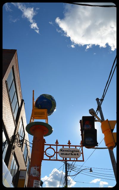 A mustard-colored chair, with a model of the earth sitting on it, signified our arrival in in the Kensington Market neighborhood of Toronto.