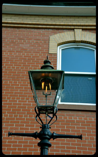 A flame flickered in an old-fashioned lamp in front of the local fire station.