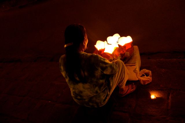 With the sky cloaked in darkness, we strolled by the Thu Bon River and watched as the colorful luminaries danced on the water. Vendors of all ages sold them along the water’s edge to visitors who passed by to admire the night’s splendor.