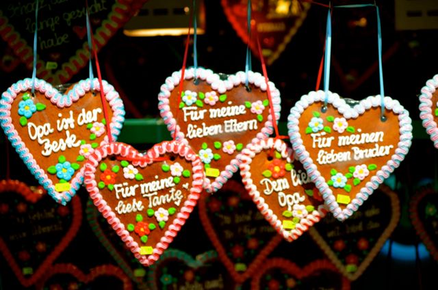 Other ubiquitous Oktoberfest elements pictured here are Brotzeit sessions and waitresses fine-tuning their biceps by carrying massive glass mugs. Each of these glasses contain one liter of beer; they are known in German as ein Maß. Mammoth pretzels and Lebkuchen hearts with sugary-sweet messages also make regular appearances at Oktoberfest.