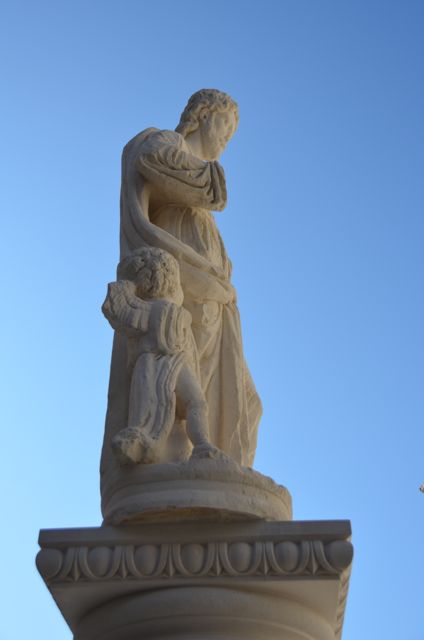 Natalija explained some of the symbolism behind Radovan’s work. Adam and Eve are represented, and the lamb represents good, the dragon symbolizes evil). She also shared an interesting art history tidbit about the column and sculpture just in front of the church.