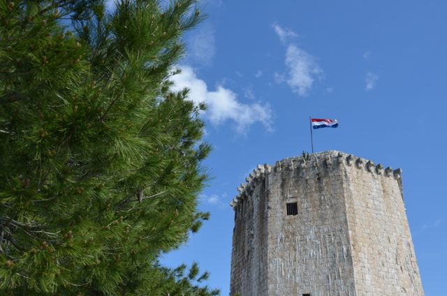 We started our walking tour at the spot where we’d originally met Natalija – Trogir’s Petar Berislavić School, a handsome, century-old building with a commanding location on the Adriatic. When we’d gone there to make arrangements to visit an English class earlier in the month, Natalija (who works as the school’s legal advisor; she is a lawyer schooled in Split), helped translate. Our visit to the 6th grade class would turn out to be a fun diversion: we chatted about the students’ current lessons (their teacher kept reminding us that we could only speak to the kids in the present tense, as it’s the only one they’d yet learned), and their extracurricular passions. One boy was an up-and-coming water polo player, another was an avid basketball fan. The female students professed a love for studying, not sports. As we left the classroom, impressed by the young students’ fine grasp of English and feeling their contagious energy, we concluded that these Croatian youth weren’t very different from their peers we’d met in classes in Southeast Asia and India just a year earlier.