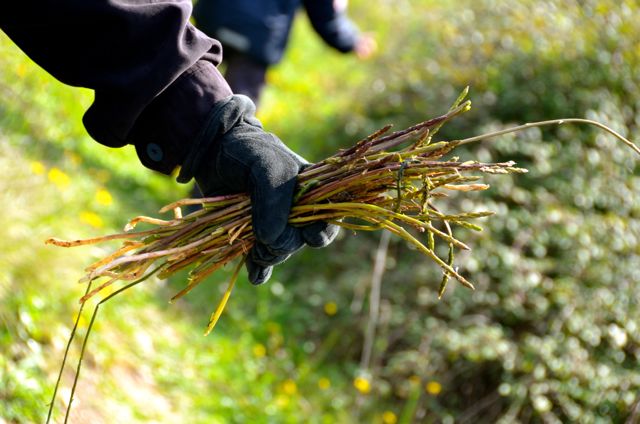 The duo wasted no time in schooling us how to properly forage for wild asparagus. The instructions were short, but the mission proved to be challenging: scan the ground for the prickly, dead growth of years past, because stalks of asparagus often emerge in its vicinity.
