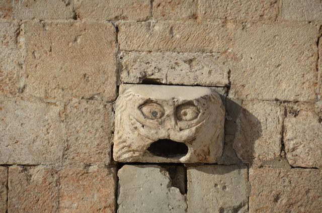 One of the most legendary maskerons is near the Franciscan monastery, close to the steep stairway that visitors climb to reach the city walls. As you come through the Pile Gate, it’s on the left side, about a foot off the ground. According to legend, if you can stand on top of the head facing the wall, maintain your balance, and remove your shirt, you will forever be lucky in love. We didn’t learn about this custom until after we spotted this maskeron – and we already feel quite lucky in love anyways :) – but it was nevertheless fun seeing these maskeron balancing attempts and learning more about the legend afterwards.