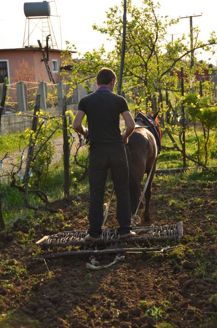 Our guesthouse neighbor plowing his front yard using traditional methods.