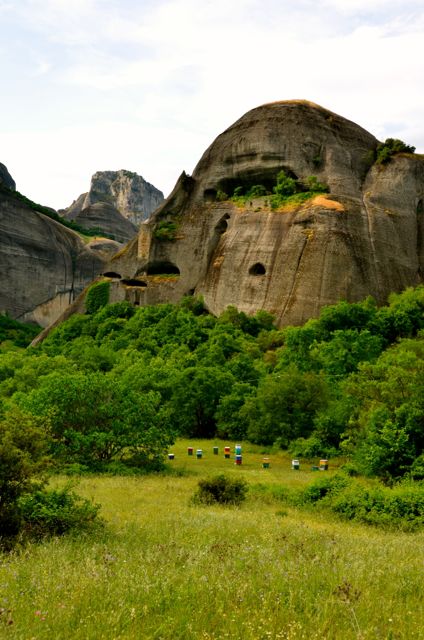 The next day, we met George, our energetic tour guide from Visit Meteora. It was an overcast morning, but George led the way and took us off the beaten path as only a local can do. Together, we passed a colorful cluster of wooden beehives, a shepherd and his flock, and a small prayer shrine.