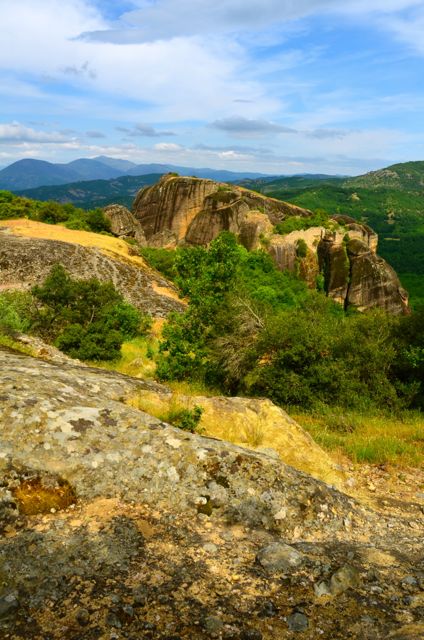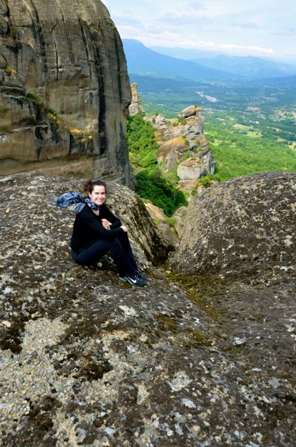 Several caterpillars tried to stow away with us during the hike down to the village of Kastraki. On the way back, we saw the ruins of monasteries that once graced the tops of the boulders. We even saw two adventure seekers climbing the rugged rocks.
