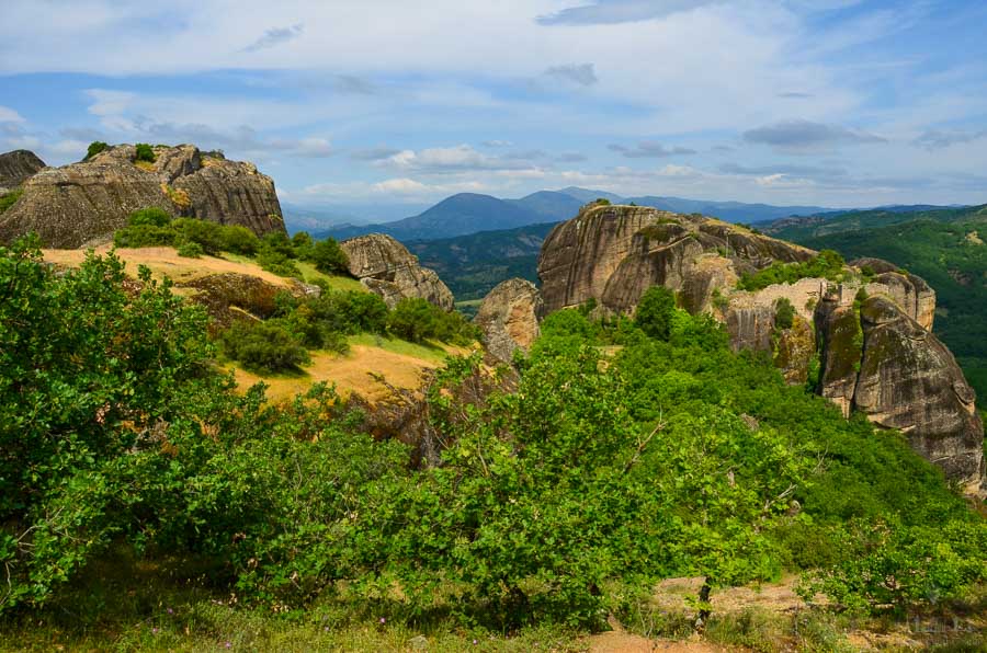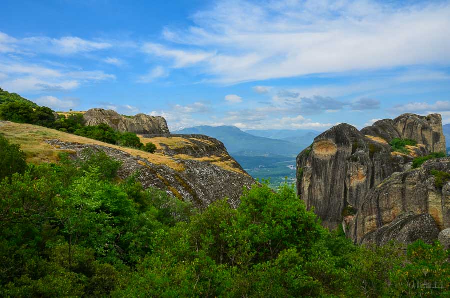 - Accommodation wise, we stayed at the cozy Guesthouse Patavalis (affiliate link) in the village of Kastraki. The hotel’s owner, Marina, whom we dubbed our “Greek mama,” surprised us with samples of tasty, home-cooked Greek food like spanakopita, candied figs, and milk custard pie. In total, we spent about a week at the Guesthouse Patavalis, staying in its Purple Room. We enjoyed the property’s terrace views of the surrounding rock formations and its convenient location. It made a great hub for exploring some of Meteora’s monasteries.