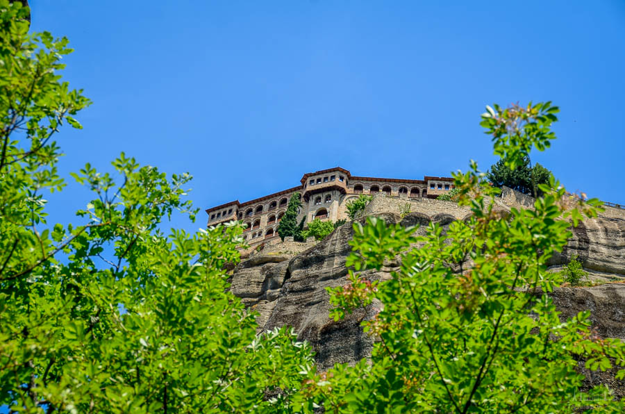 As we wound underneath an oak tree’s branches, we spotted a monastery that most visitors to Meteora never see – the Ypapanti Monastery. It doesn’t sit atop rock formations. Instead, it appears to be clinging to the side of one. George explained that the Ypapanti Monastery is one of several monasteries that is no longer active. It’s currently closed to the public.
