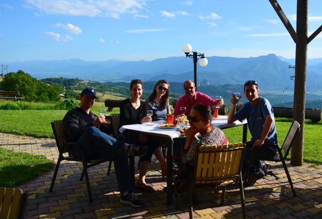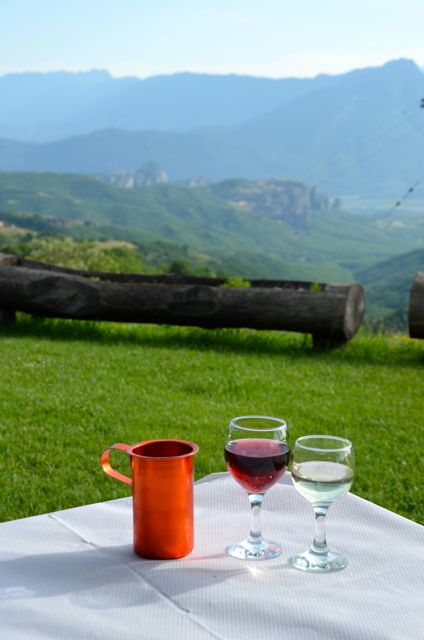 Many thanks – ευχαριστώ πολύ – to Angelina and George for hosting us on this beautiful evening. We enjoyed meeting fellow travelers, as well as making it out into the countryside to enjoy a delightful glass of wine and conversation. We were also pleased to be taken to more remote spots like the hermit caves and inactive monasteries about which many visitors to Meteora are unaware.
