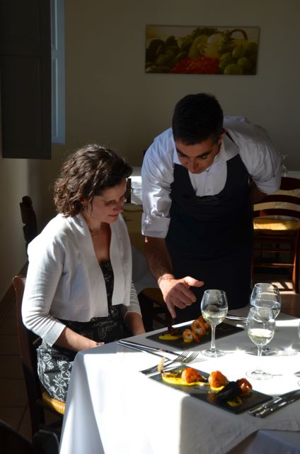 In Selene’s fine dining room, Georgia coyly delivered a bottle of 2012 Sigalas Assyrtiko to our table. She then handed us over to waiter Constantinus, who expertly guided us through our four courses, while reminding us of their special characteristics.