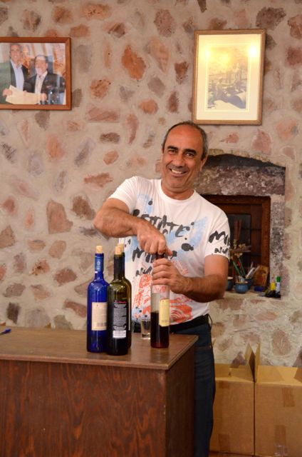 Our first stop was the traditional Gavalas Winery in the village of Megalochori. Described as “traditional” in its approach to winemaking, the winery has been owned by the same family for three centuries. As we eagerly awaited our first sampling of wine, Vaios led us through the salesroom, plentiful with sepia-toned family portraits, bottles bearing medals, and vintage wine vessels.