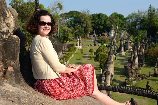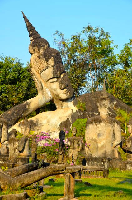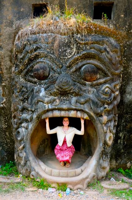 The 25 km (15 mile) ride from Vientiane to Buddha Park had taken us through extremely bumpy and dusty backroads. Though our journey would’ve undoubtedly been more adventurous by tuktuk, it also would have been more painful to our bottoms given the lack of shocks in the scrappy little vehicles.