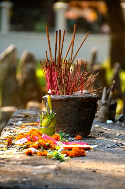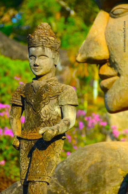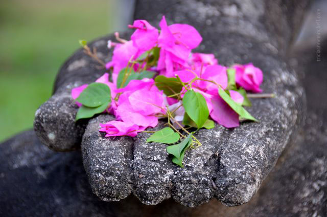 With all the youth there, the atmosphere was more amusement park than meditative on the day of our visit, though I’ve read that some monks do use the park for the latter purpose. Fuchsia bougainvillea blooms carefully placed in the statues’ open palms reminded visitors of the park’s more spiritual side.