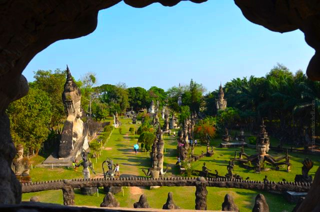 Construction of Buddha Park started in 1958 by Luang Pu Bunleua Sulilat, who oversaw a similar park’s construction in neighboring Thailand. There are Buddha statues, Hindu characters like Shiva and Vishnu, and humans, animals and demons.