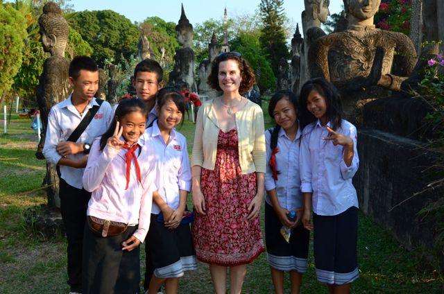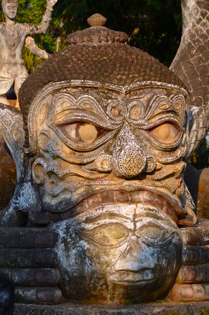 The sculpture park is known locally as Wat Xieng Khuan, or “Spirit City,” and though its name implies otherwise, Buddha Park does not have a temple. In fact, during our late afternoon visit last January, it was brimming with lively Laotian students clad in red, white, and blue school uniforms that lent them a French air.