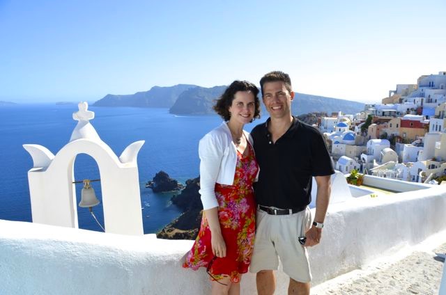 - If you’re looking for a cozy studio apartment in Santorini, consider the Phaos Santorini Suites (formerly Rhapsody Apartments) in Imerovigli. We spent one week here. The owner, George, was helpful and friendly. He even shared delicious Santorini zucchini from his own garden with us. We loved the apartment’s quiet location. It was still a walkable distance to Fira, the island’s public transportation hub. The sunrise views from our balcony were extraordinary, too!