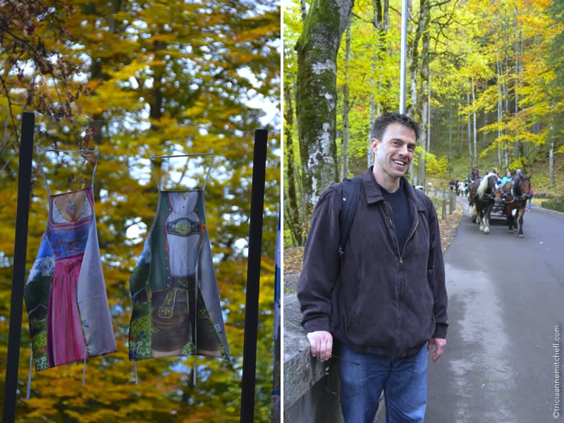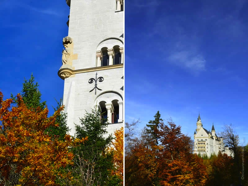 As we inched closer to the Neuschwanstein Castle, I couldn’t help but think it looked even more fairy tale-esque thanks to the autumnal hues Mother Nature had dressed it in. Rich yellow, copper and crimson leaves framed the world-famous castle on the craggy rocks, contrasting sharply with the lime-green fields below it.