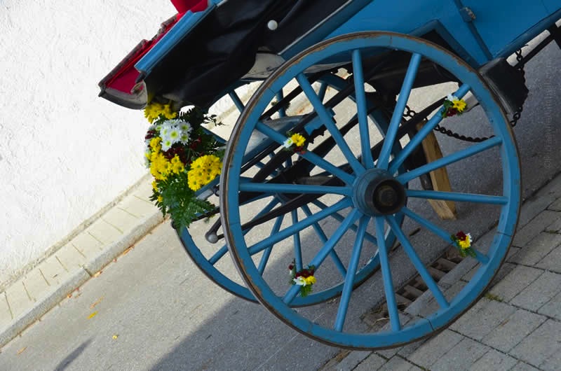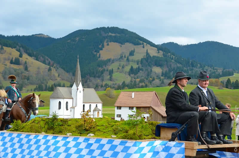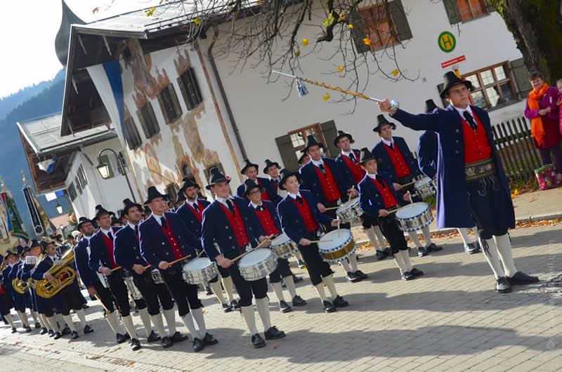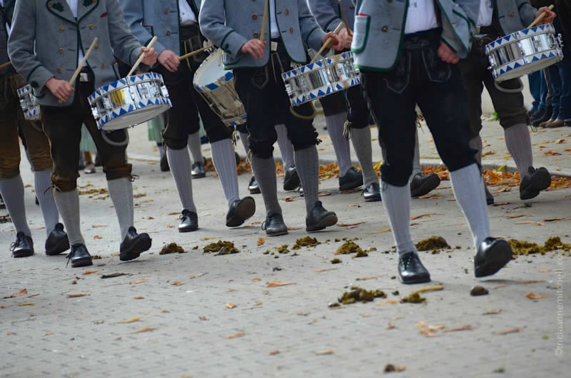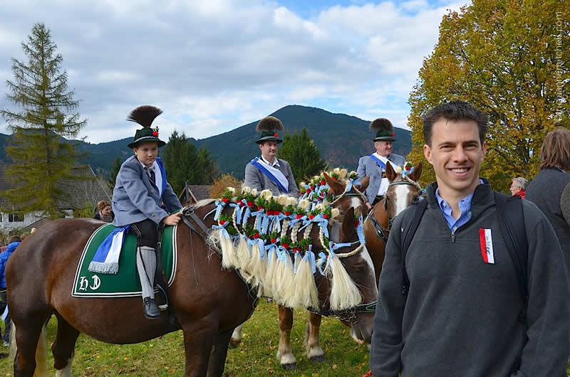 As we walked from the town of Oberammergau to the neighboring village of Unterammergau, Germany, numerous horses trotted past us. The animals’ beautifully decorated manes and tails blew in the late autumn breeze. Not to be outdone by the horses’ distinguished appearances, the owners also sported fine Bavarian attire. Men wore grey woolen jackets finished with deer-horn buttons, and dark green and brown Lederhosen. The ladies, on the other hand, sported Dirndls with colorful flowing skirts, as well as button-down sweaters to protect them from the chilly air.