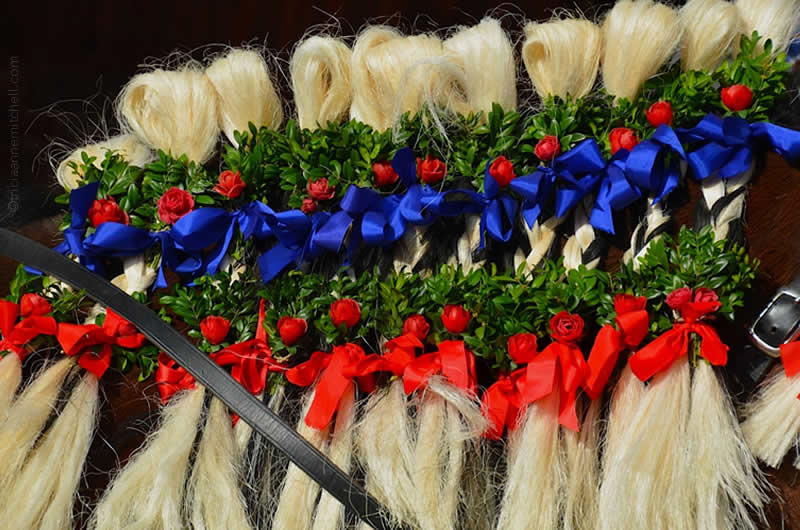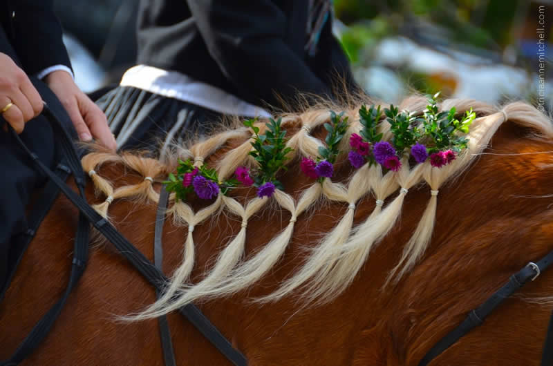 Even before the parade officially started, the mood was festive. Participants on horseback poured liqueur-laden hot beverages into mugs while catching up on village gossip, as band-members with impeccably-shined brass instruments warmed up. Though they’d only been lined up for the parade for a short time, some spunky horses already looked impatient, ready to escape the upcoming parade in favor of a trot through the countryside.
