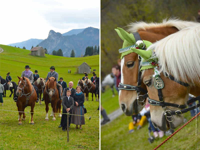 On horseback and on foot, we were all heading through the idyllic Bavarian countryside to Unterammergau’s 50th annual Leonhardiritt or Leonhardifahrt procession and horse-blessing ceremony. Such events are held in parts of Germany and Austria mostly during the autumn months to honor St. Leonhard, the patron saint of agricultural animals. The occasion is a way of celebrating the horses that have historically played such an important role in rural communities.