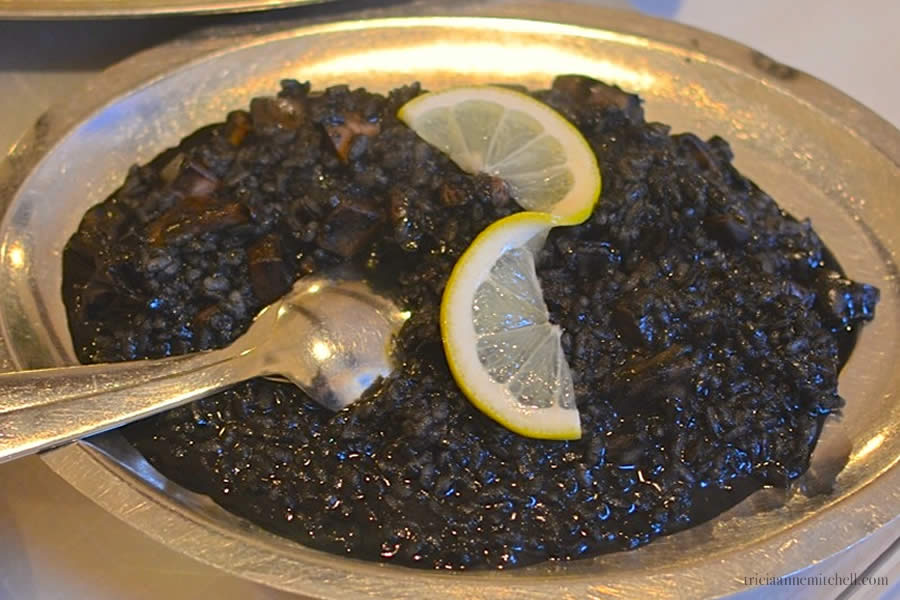 After Dino had shown us the the palace shell, and several other notable spots (Split’s Riva, a bustling seaside promenade filled with café-goers, the bronze Gregory of Nin Statue and the Pjaca — the so-called People’s Square), we had sufficiently worked up an appetite so we headed to the Konoba Varoš, a cozy restaurant that’s popular with Split locals and not far from the town center. Surrounded by ceilings enveloped with fishnets and walls adorned with maritime–themed paintings, we started off with a carafe of a Varoš house wine – a very pleasant and traditional Dalmatian Plavac Mali, which is a blend of Zinfandel (Crljenak Kaštelanski) and Dobričić grapes. Shawn and I ordered sautéed Red Scorpion Fish (Škarpina) and Black Cuttlefish Risotto (Crni Rižot).