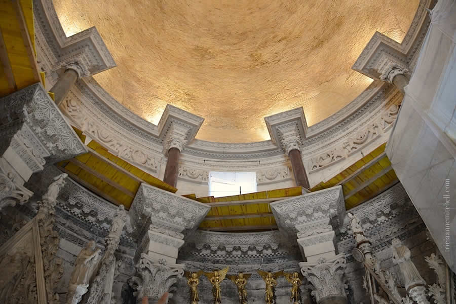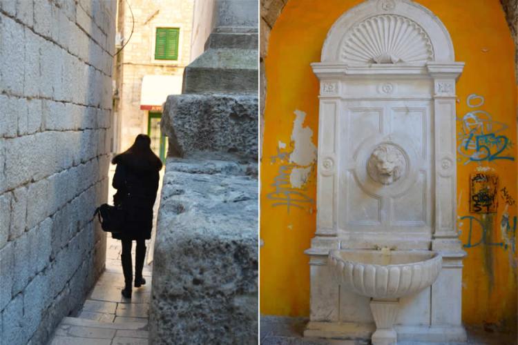 Next, Dino whisked us past what still remains of the Palace of Roman Emperor Diocletian — its walls, basement, Mausoleum (now the St. Duje Cathedral), Peristyle, Vestibule, and Jupiter’s Temple (now the baptistery). He also gave us an overview of Diocletian himself, describing the emperor as a “man of contradictions” who was born to a family in a low economic class not far from present-day Split, only to “rise to the stars.”