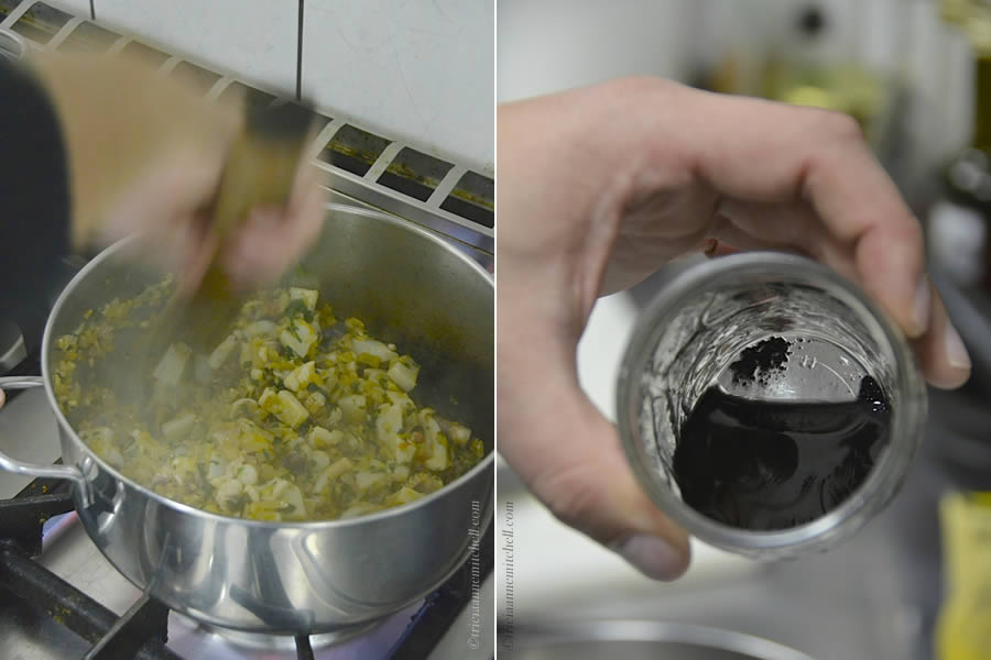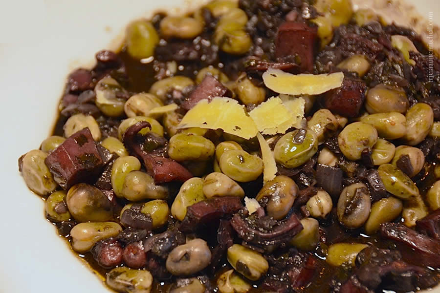 - Cuttlefish & Broad Beans: Broad beans and cuttlefish combined with a base of red onions, garlic, parsley, salt, pepper and olive oil. Cuttlefish ink is added at end of cooking for aesthetic purposes, and to give the dish a bit of a salty kick.