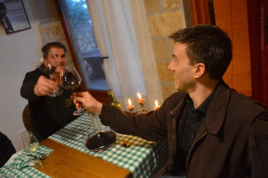 Eventually, we plated our carefully-prepared cuisine and took it into Jakša’s dining room, where we savored the delicious meal Jakša so patiently helped us create. We would remain there until the early evening hours, taking our cue from the melted-down candles that it was time to go. It was a fantastic day that gets me hungry just thinking about it!