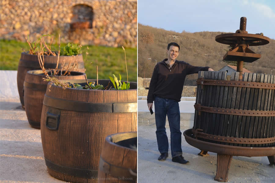 A vintage winepress sits at the ready by the entrance to the Krolo home, and winemaker Dražan proudly shows off his bottle of Cabernet Sauvignon-Merlot.