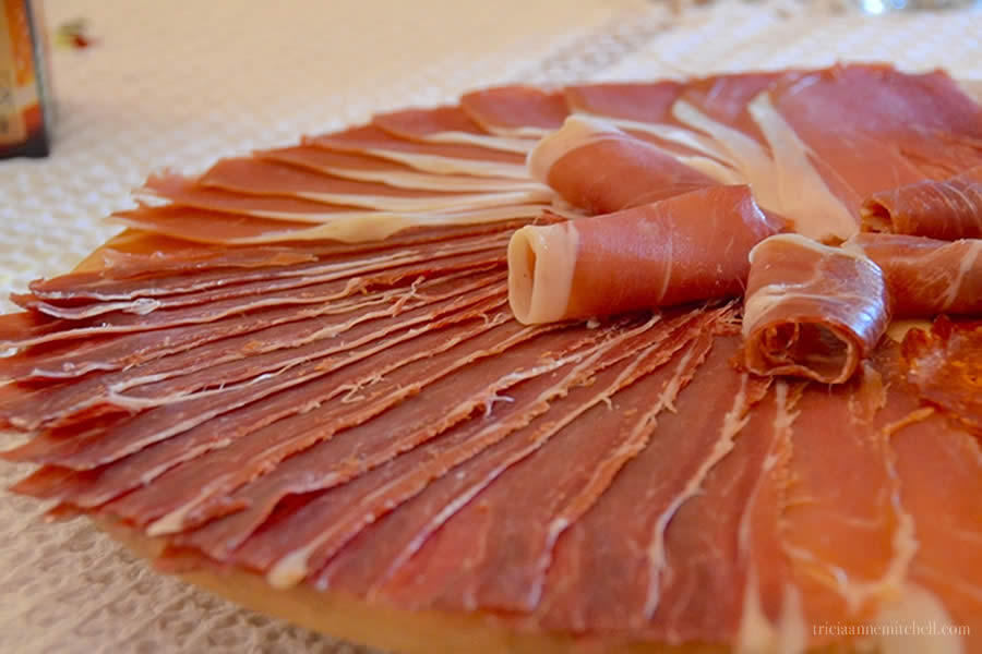 A plate of Pršut (dry, cured ham) which is similar to Italian Prosciutto. Like the glorious cheese accompanying it, the pršut was made by the Krolo family’s neighbors.