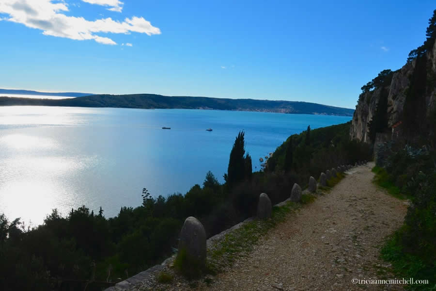 - The eastern edge of Marjan Forest Park (Marjan park šuma, in Croatian) is a 10-minute walk from Diocletian’s Palace. There’s a café just to the west of the popular observation deck, but Marjan’s extensive greenspace also offers many wonderful spots to enjoy a picnic you’ve packed yourself. It took us about 1.5 hours to walk to Marjan’s westernmost tip near the Institute of Oceanography and Fisheries (Institut za oceanografiju i ribarstvo). We walked at a very relaxed pace, stopping to take photos and admire the scenery.