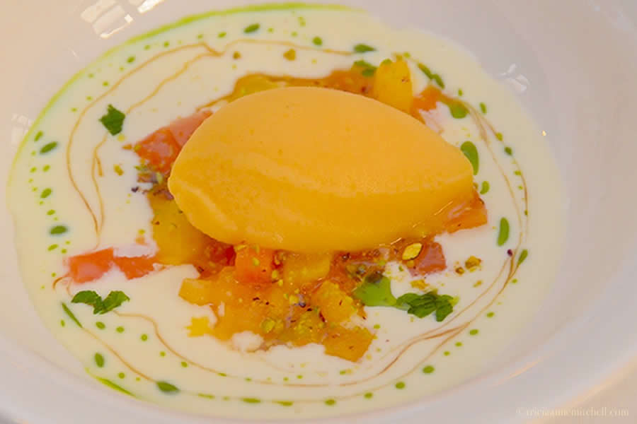 - Homemade Apricot Ice Cream in a White Chocolate Soup