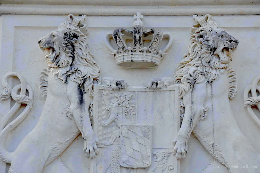 This detail on the Crucifixion Monument is similar to King Ludwig’s coat of arms at the entrance to the Neuschwanstein Castle.