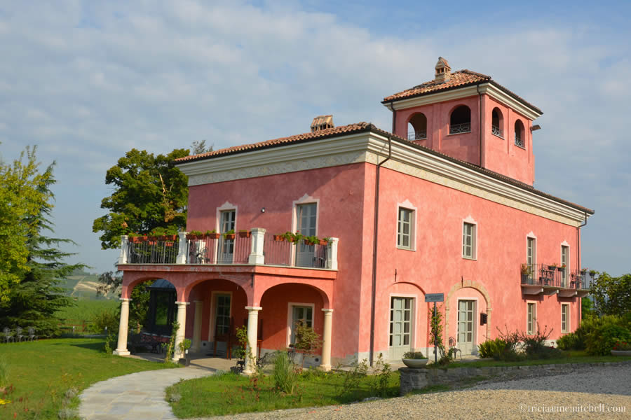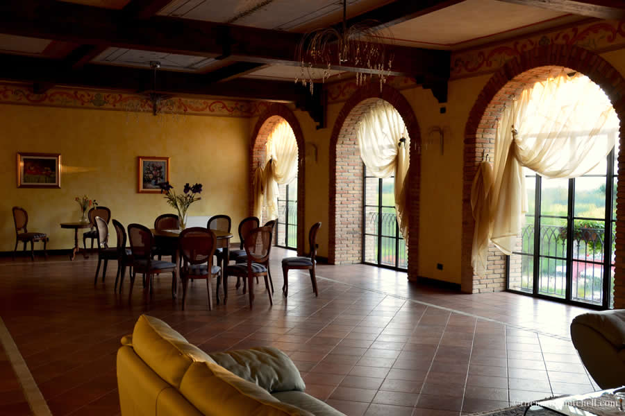 At first glance, Tenuta La Romana seemed as though it was peeking out of a robe of vineyards dressing the Monferrato hills. The mustard-colored building, with its Palladian windows and chocolate-brown shutters, was eye-catching, even among a stunning landscape of summer green hues.