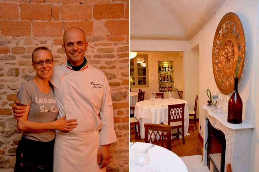 As he escorted us around the building’s three levels, it became apparent that Chef Luigi has a penchant for interior design, too. From an outdoor seating area with transparent chairs and mood lighting, to an upstairs dining room with an Old-World marble fireplace, Luigi was eager to show how he and his wife, Michela, have transformed the building. His latest project is a transformation of the restaurant’s tower. He plans to enclose its windows so that he can create an intimate dining area where couples or private parties can dine while overlooking the hills of the Monferrato and the Langhe.