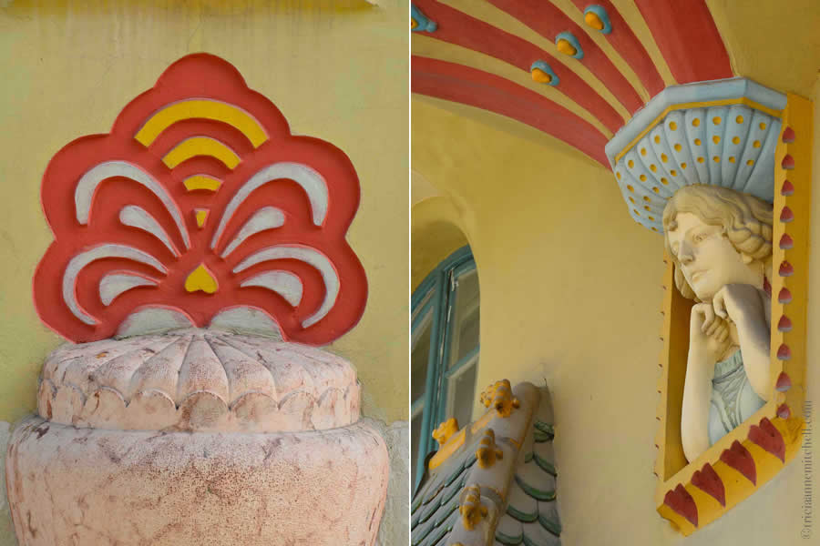 At times, I imagined that the elaborate structures had spilled out from the pages of a Dr. Seuss book, thanks to their colorful and whimsical nature. I loved the vibrant ceramic tiles adorning select rooftops, the curved gables and symbolism—everything from beehives and hearts to gargoyles and flowers.